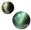 Кошачий глаз является кварцем с оливково-зелеными иголками рутила. Этот камень обладает стеклянным блеском, а своим внешним видом похож на глаз кошки с вытянутым зрачком. Минерал может быть с золотисто-зелеными или серо-зелеными переливами.